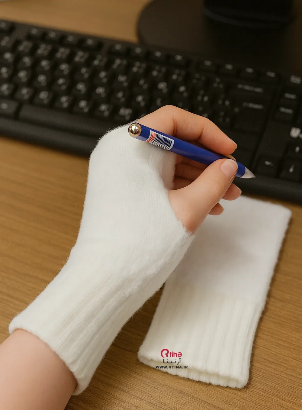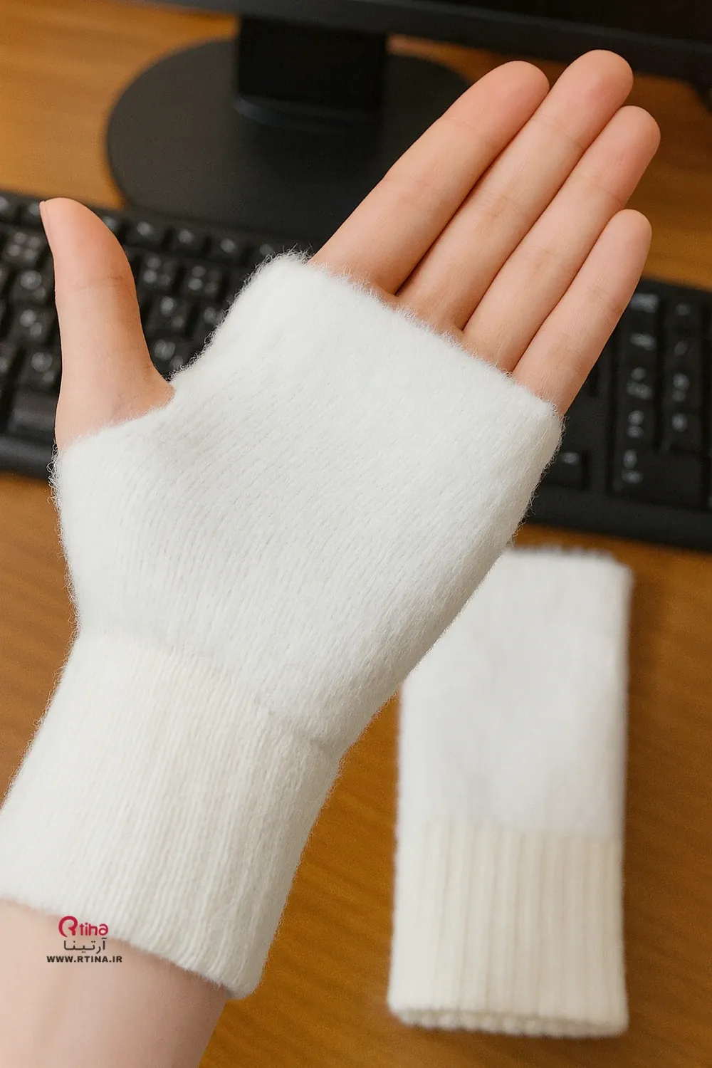 دستکش نیمه انگشتی سفید دخترانه و زنانه